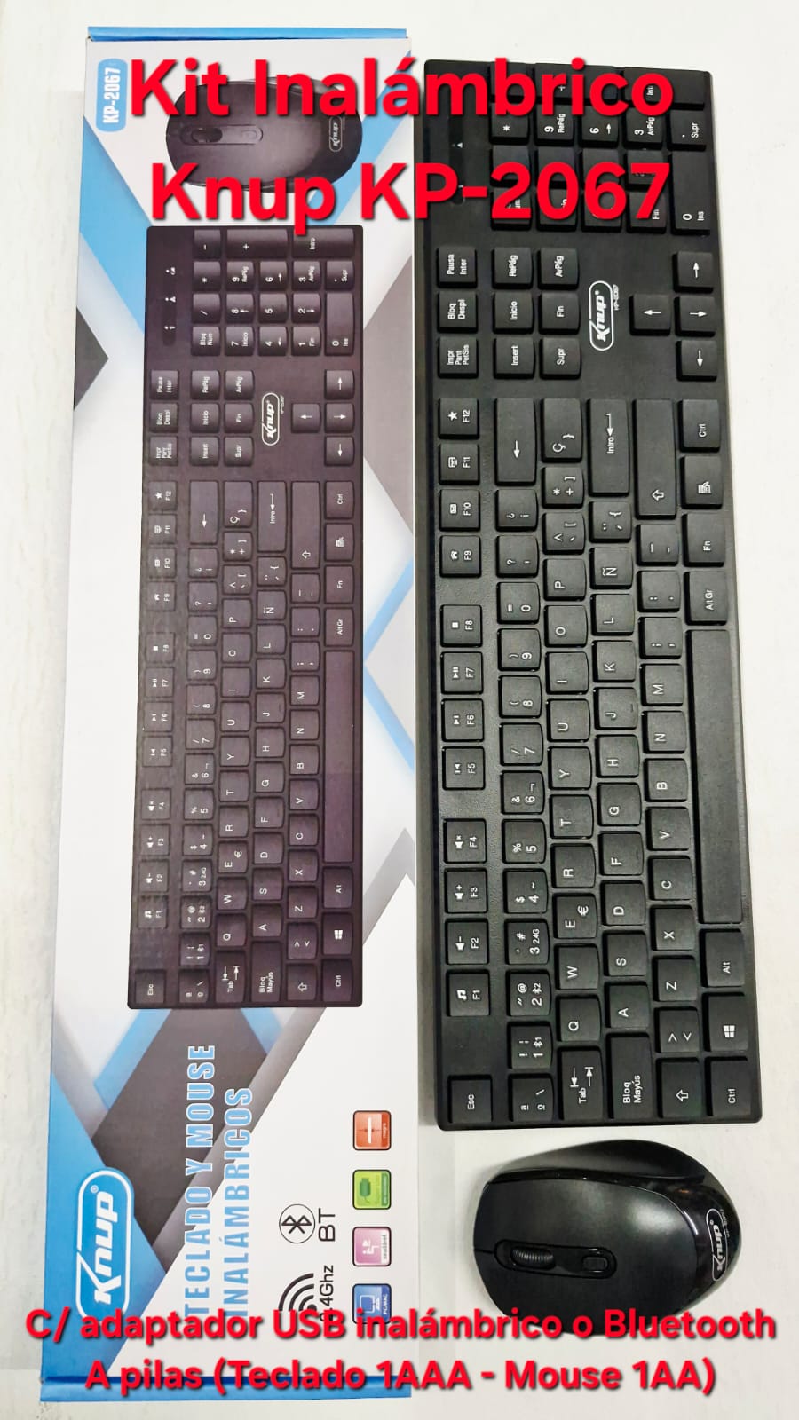 Kit Mouse Y Teclado Inalambrico Usb + Bluetooth Knup KP-2067